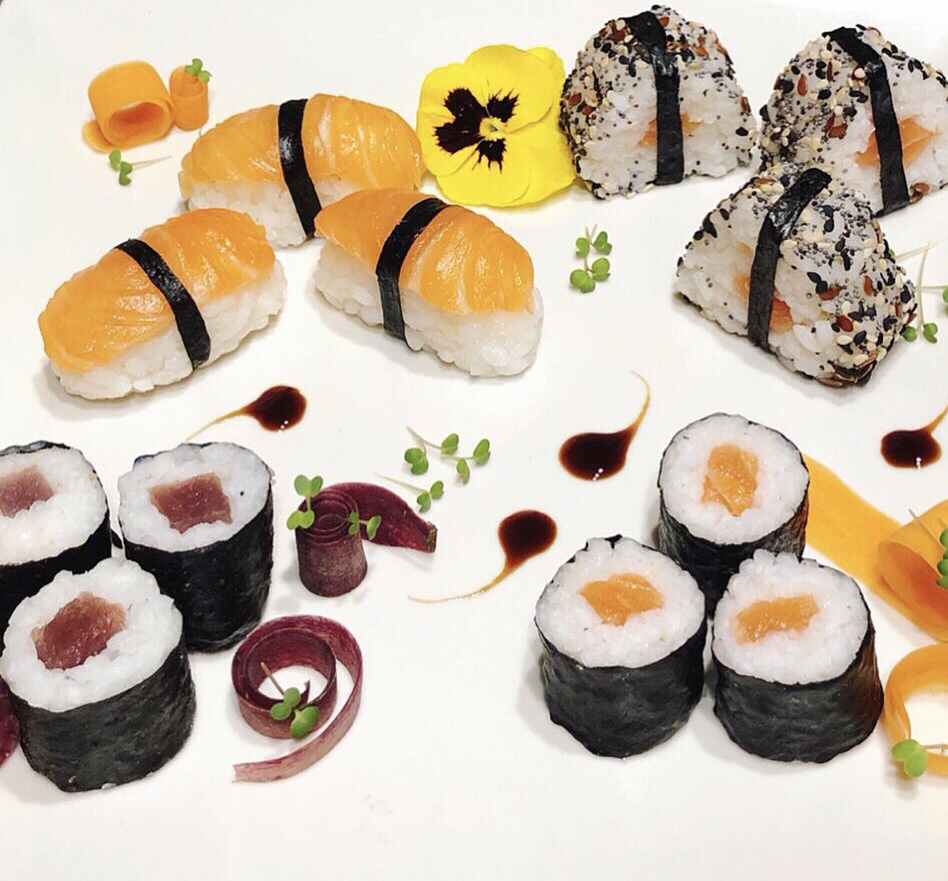 - Chiudiamo con una strisciolina di alga e procediamo allo stesso modo con altro riso.
